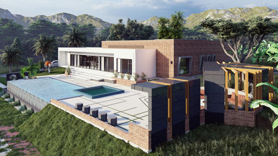 as the country side of Rwanda keeps growing we wanted to design a simple sustainable and economical house for the country side, with availability of bricks this design focuses on less is more and the bright white of the main entertainment area brings contrast and balance to the building.
